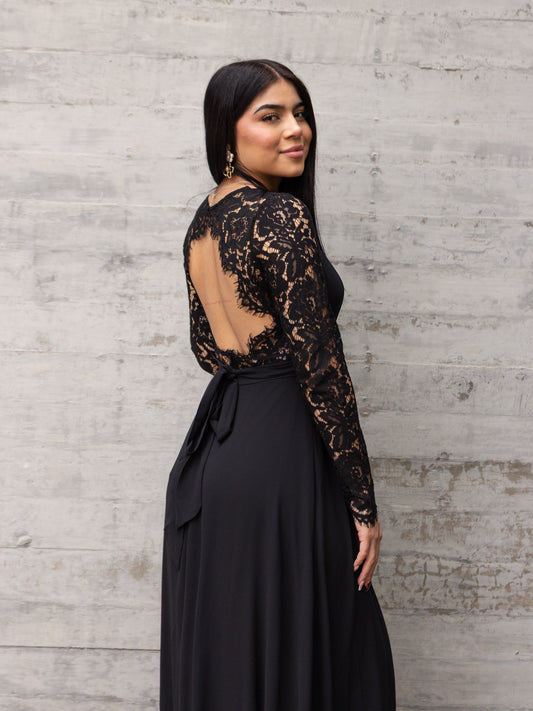 VESTIDO MANGAS DE ENCAJE NEGRO