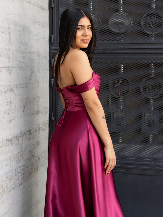 VESTIDO BURGUNDY SATIN