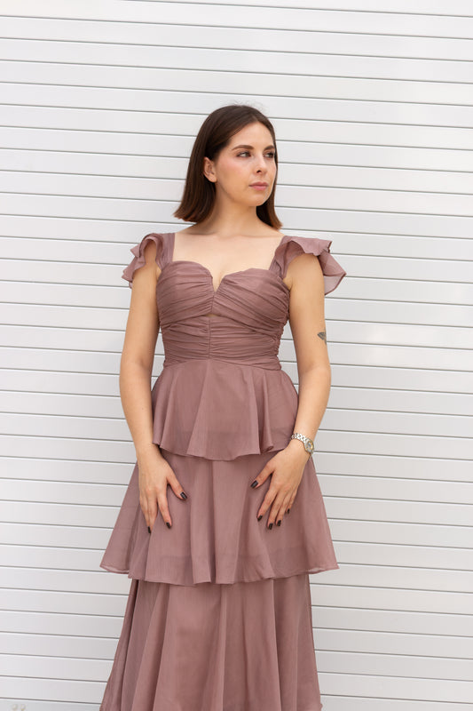 VESTIDO MAUVE CON CAPAS
