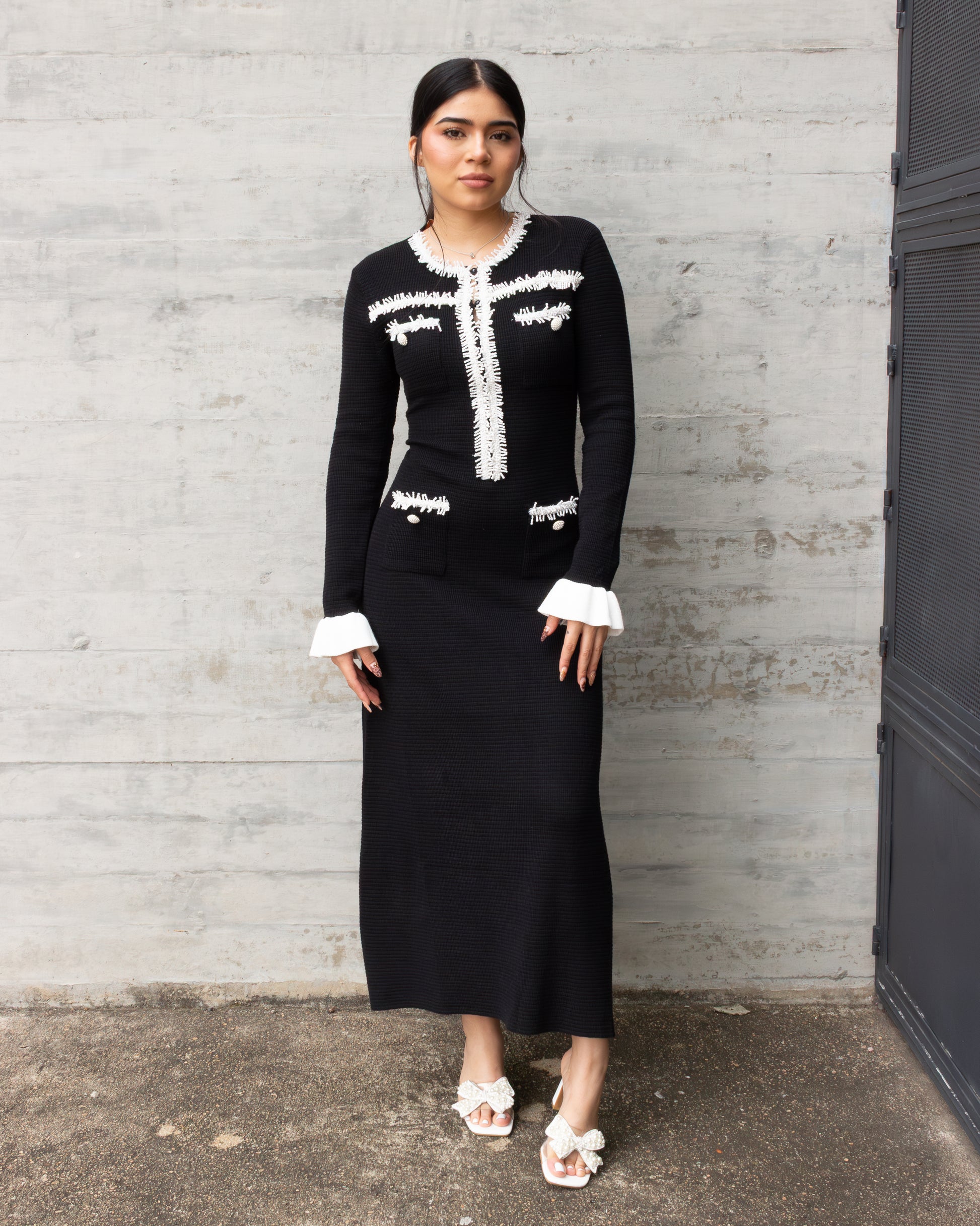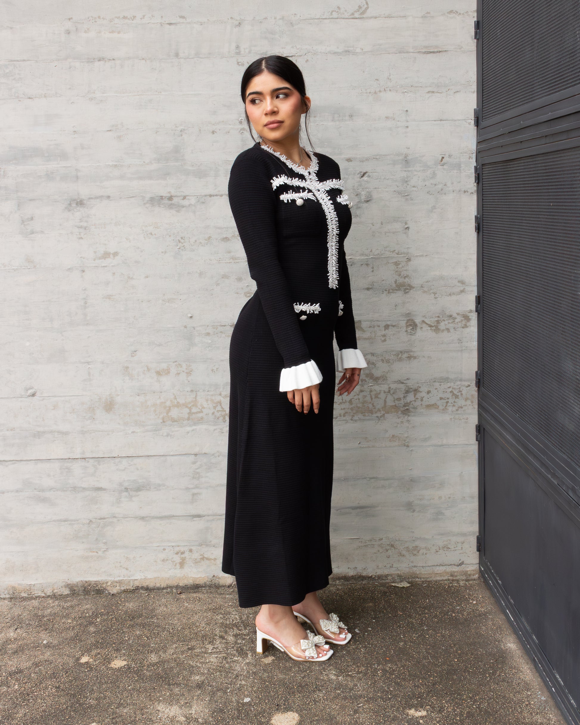 VESTIDO LARGO DE PUNTO CON PERLAS